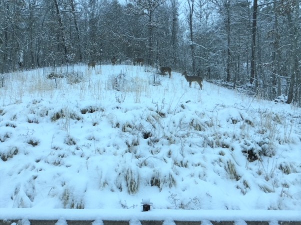 deer in snow orchard morning 1-17-18