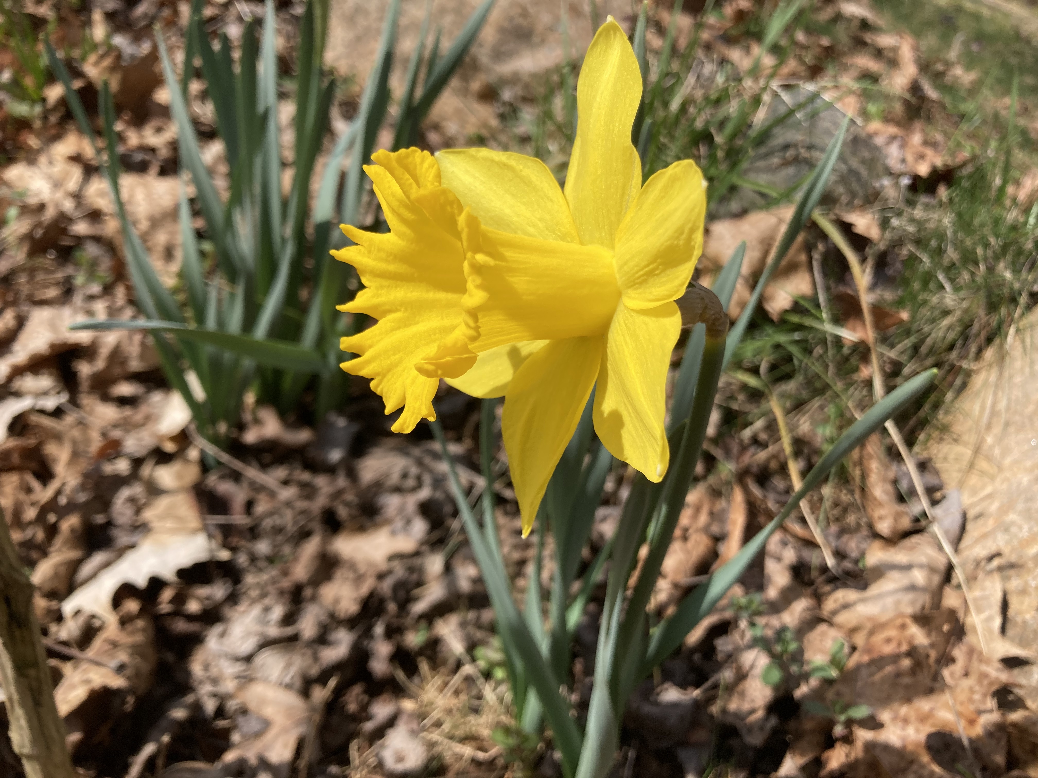 It’s been raining most of the day, and now it’s pouring. We had a lot of thunder earlier, but I think it’s passed for now. When I opened the door to take this photo, the only sound was from the spring peepers. They’re mostly in the little creek, but a couple live in a deep puddle where one of the culverts empties. I became aware of them over a week ago when I hear one jump from the bank into the water and have been trying unsuccessfully to get a photo ever since. To paraphrase the pangram, “The quick brown frog jumps into the muddy puddle.”