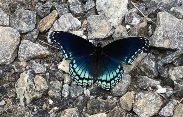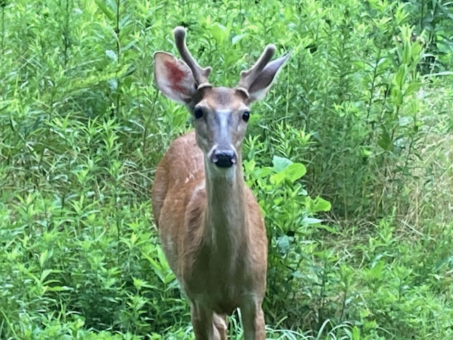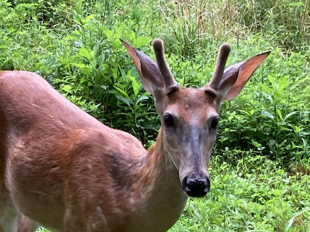 If you could follow me as I ramble most mornings, you might see me watching the woods for a deer, stopping to listen to birds (and sometimes using the new Sound ID feature of Merlin Bird ID from the Cornell Lab), stalking a butterfly, talking softly to a rabbit or maybe a deer near the road, or just marveling at the beauty of nature. Until this week, you would NOT have seen me stop in my tracks because of a bear headed toward me on the same road! We just looked at each other, and it went down the hill into the woods before I could take a photo.