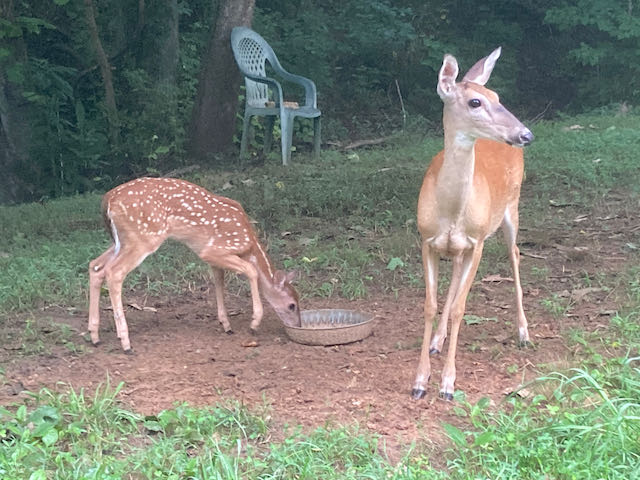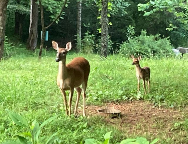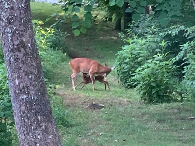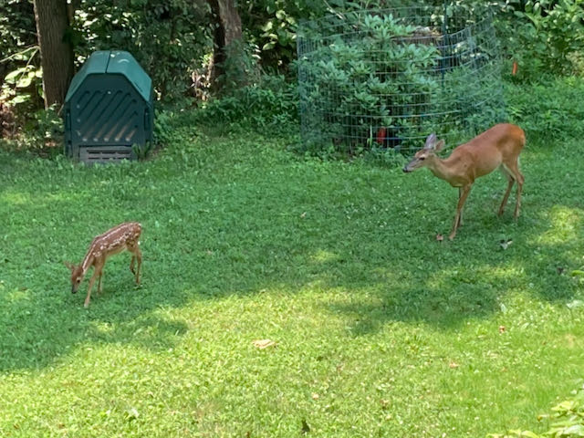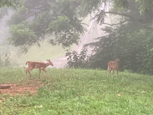 And yes, there are fawns—at least two, maybe three. I know that Spooky and Jenny each have one one, and I think one of the more skittish does may have twins.