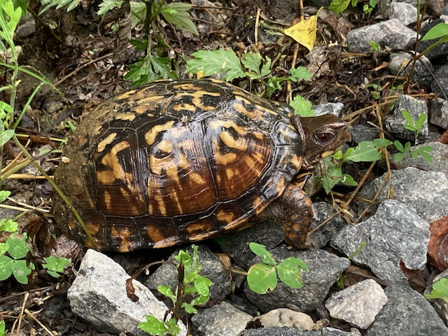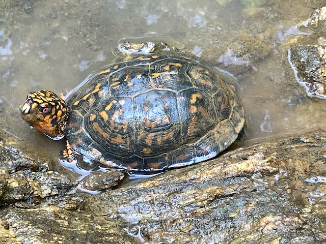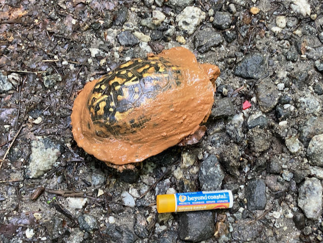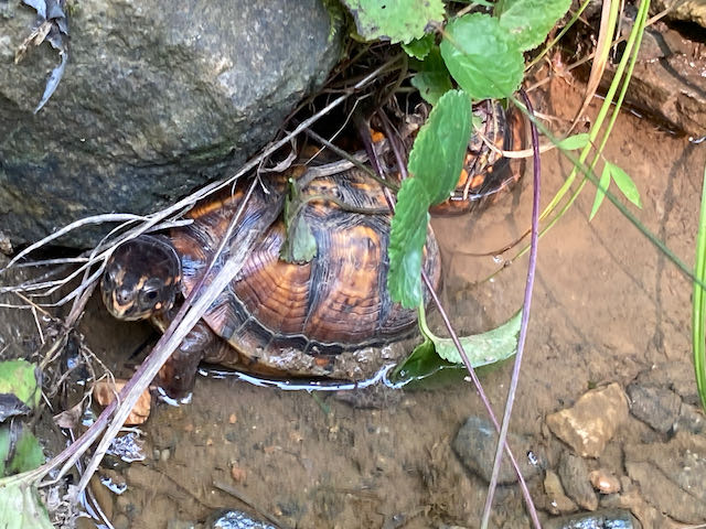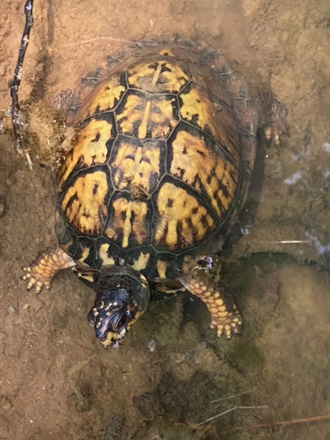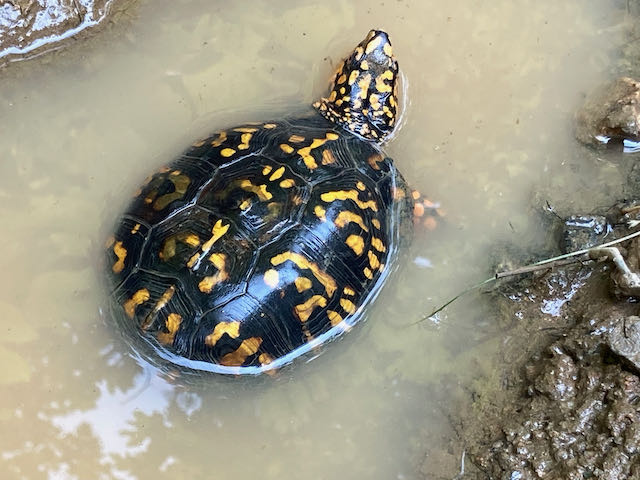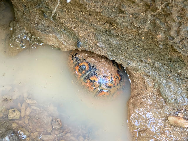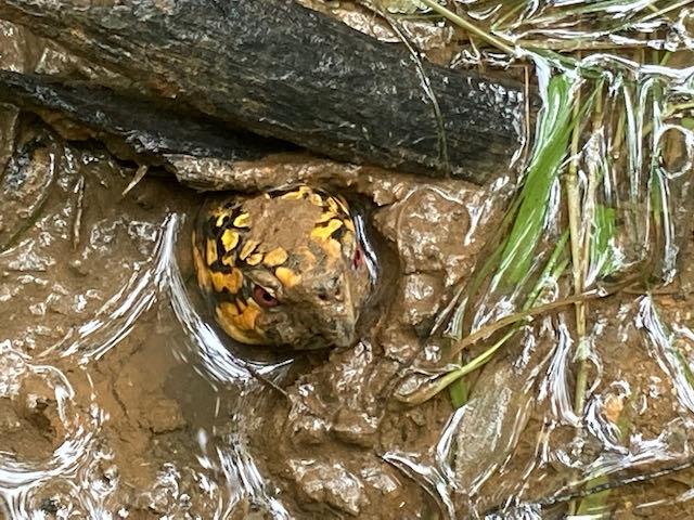 Oh! You’d also see me looking for box turtles in puddles in the ditch and the stream. Sometimes they’re buried in the mud so much that it’s hard to even see them!